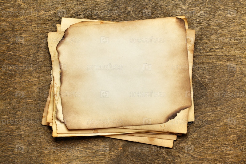 Стопка старых листков бумаги на деревянной поверхности