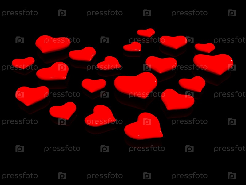 Сердце из сердечек на черном фоне. 3D