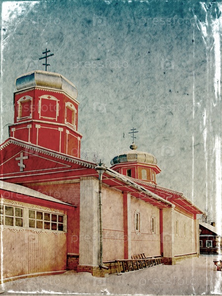 Красная церковь на гранжевом фоне