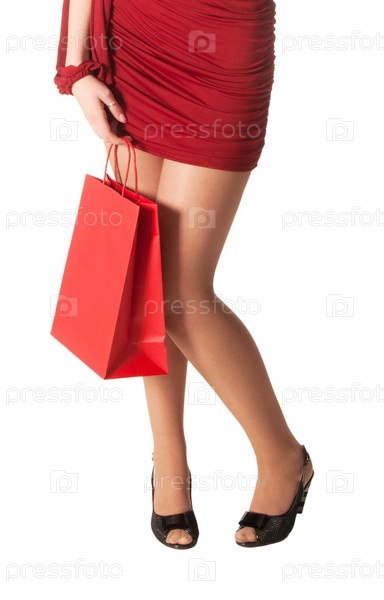 Женщина с пакетом на белом фоне