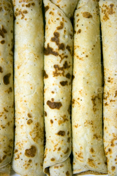 Крупным планом нескольких блинов, свернутых в трубочку
