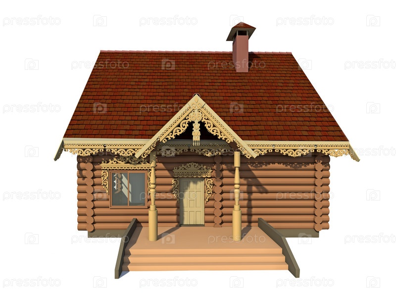 Деревянный сельский дом, фасад с крыльцом