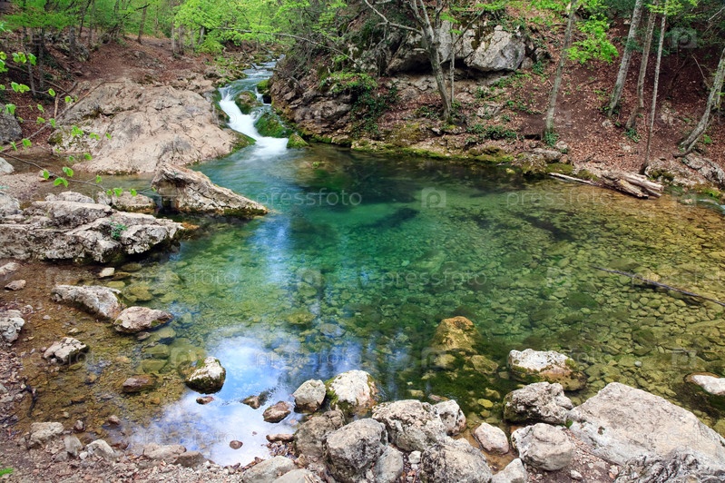 Голубое озеро в горной реке