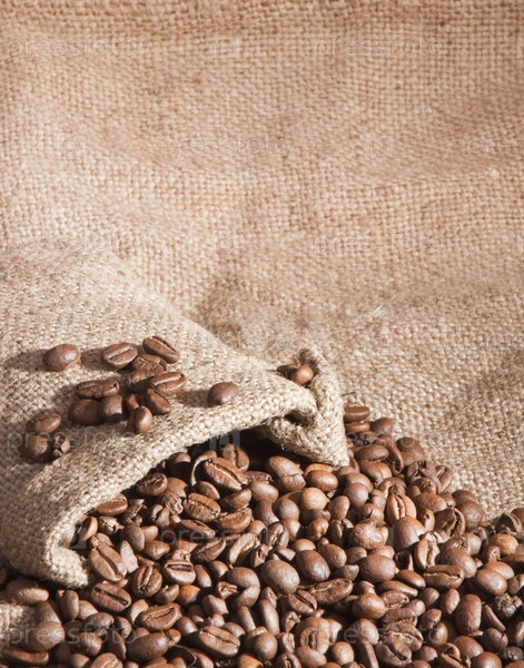 Зерна кофе на фоне мешковины