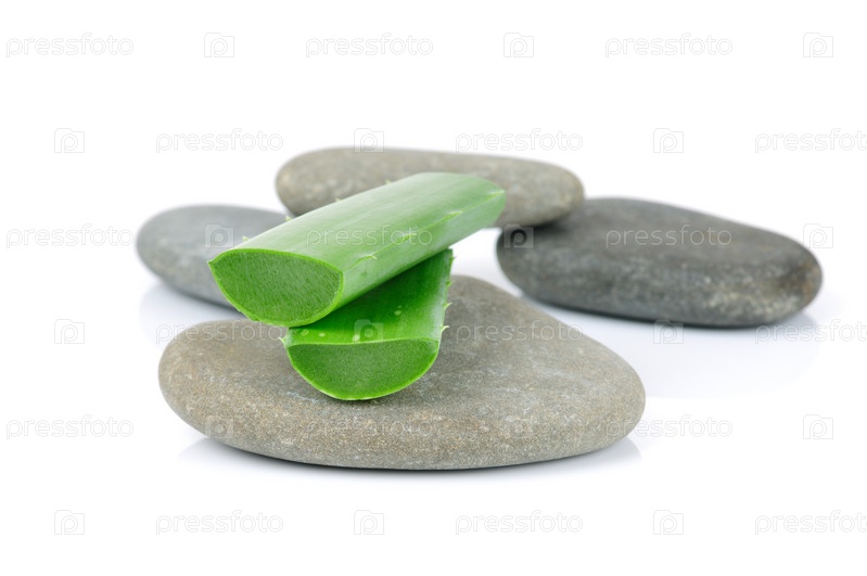 Спа-камни и алоэ на белом фоне