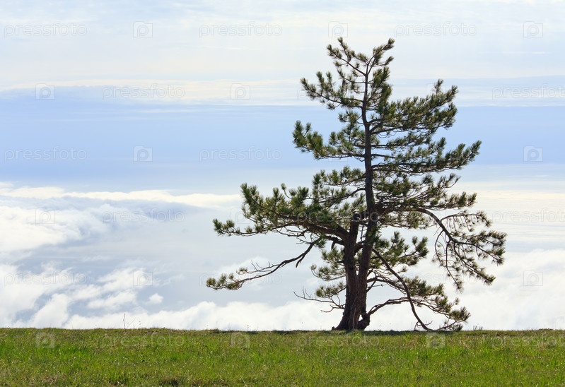 Одинокое хвойное дерево на лугу