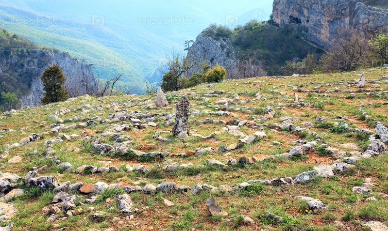 Концентрические каменные круги на плато в Великом Каньоне Крыма, Украина