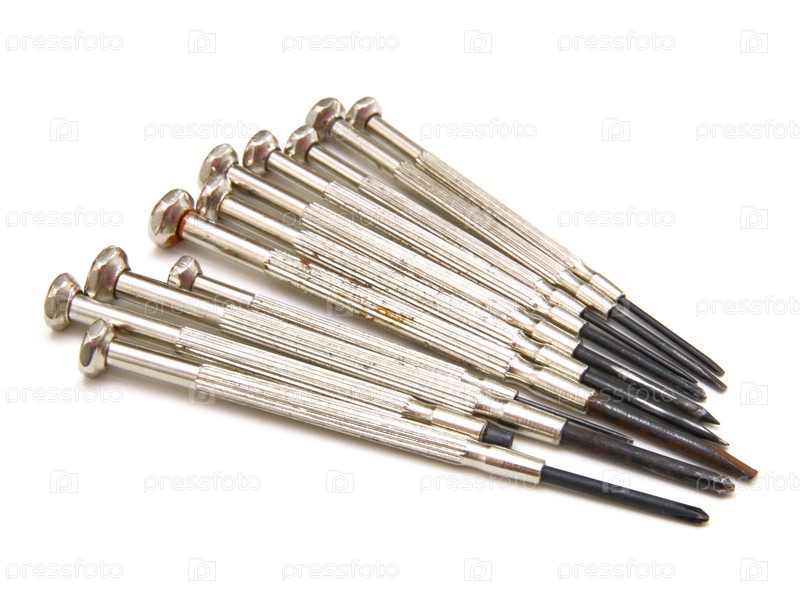 Комплект часовых отверток на белом фоне