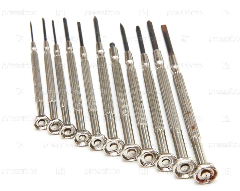 Комплект часовых отверток. Белый фон