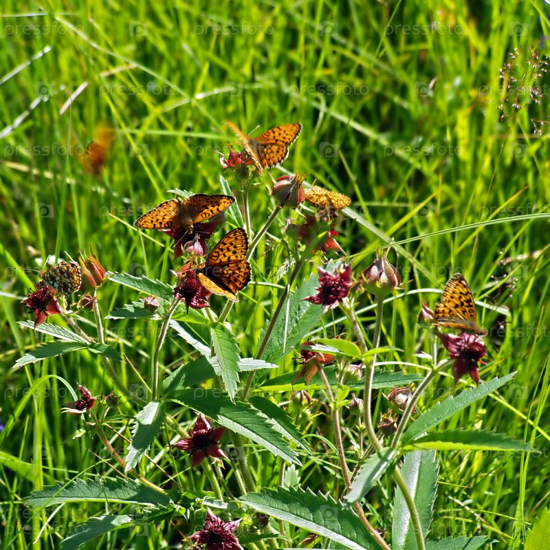 Бабочки в зеленой траве