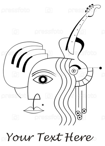 Человеческое лицо, рука, фортепиано и гитара - абстрактная композиция, музыкальный коллаж