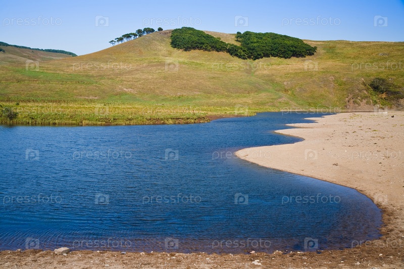 Песочный пляж на берегу Японского моря, бухта Троицы