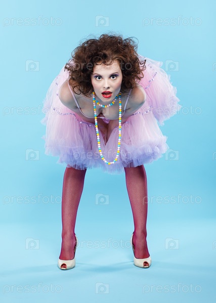 Портрет красивой брюнетки на голубом фоне