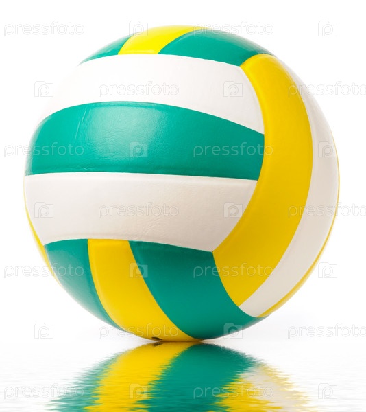 Яркий волейбольный мяч с отражением, изолированный на белом фоне