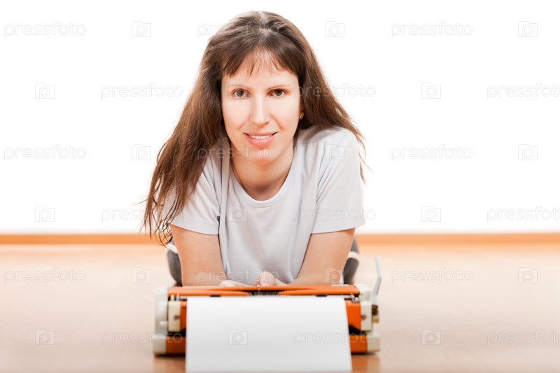 Женщина печатает на печатной машинке