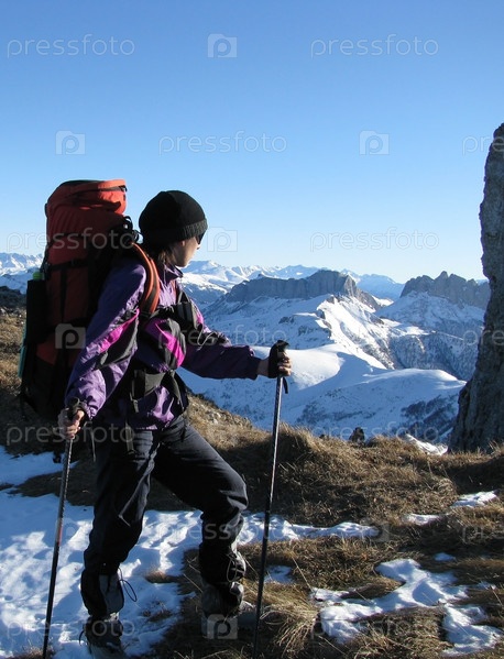 Девушка на фоне Кавказского Главного хребта. Гора Тхач