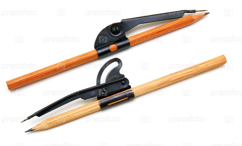 Два карандаша с прикрепленными к ним циркулями на белом фоне