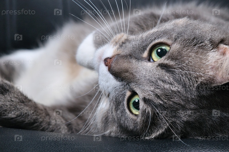 Кот, лежащий на кожаном диване