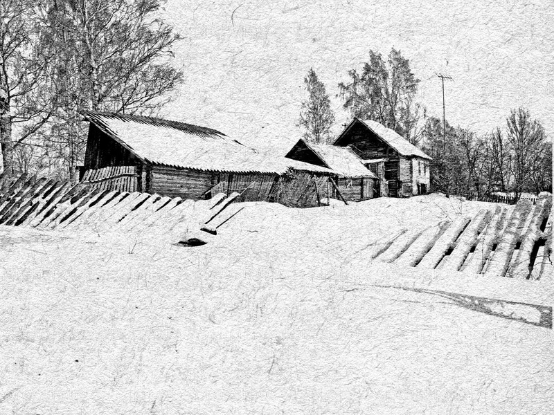 Деревенский дом в зимнюю пору
