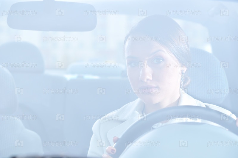 Красивая женщина сидит в своей машине