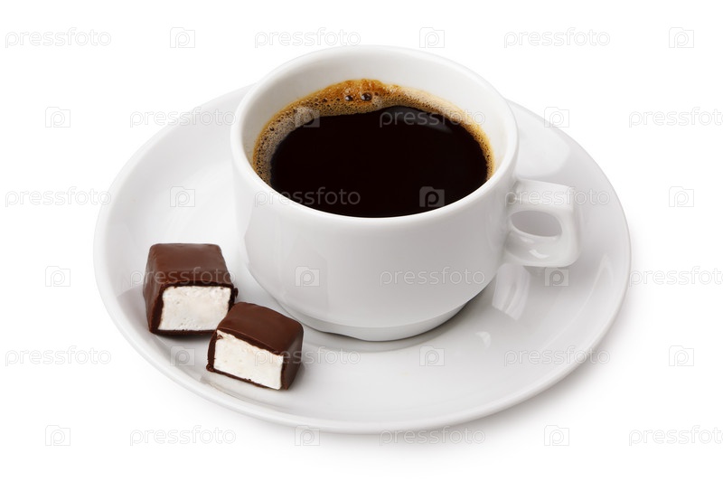 Чашка кофе с шоколадной конфетой