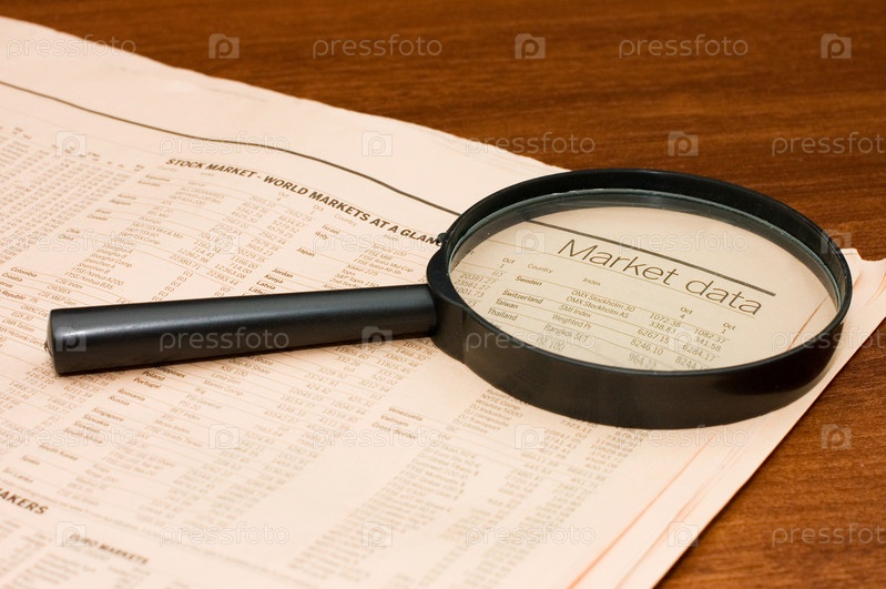 Увеличительное стекло над экономическим обзором