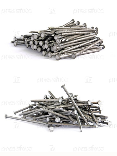 Строительные гвозди на белом фоне