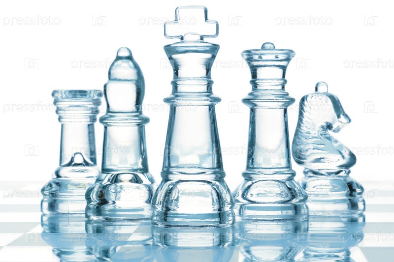 Прозрачные стеклянные шахматы изолированы на белом фоне
