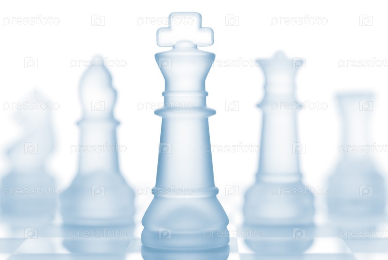 Прозрачные стеклянные шахматы изолированы на белом фоне