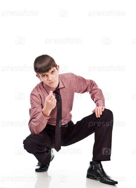 Мужчина, одетый в деловом стиле, на белом фоне