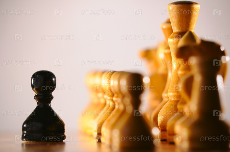 Черная пешка перед рядом светлых шахматных фигур