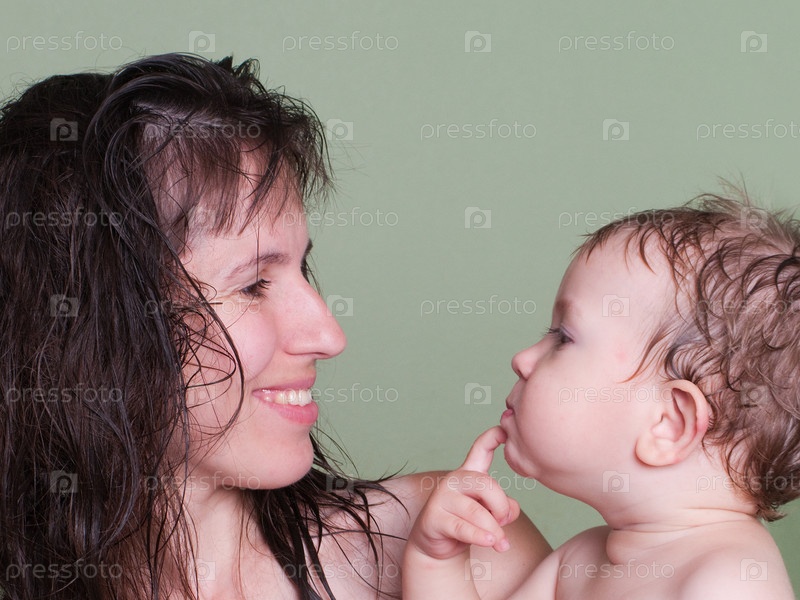 Улыбающаяся мать и маленький ребенок в семейном счастье