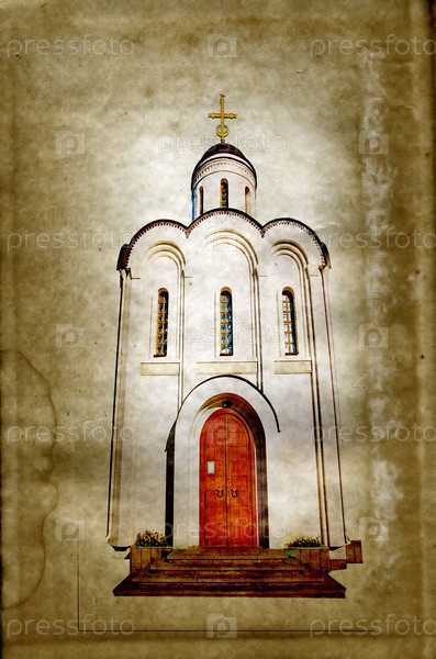 Белокаменная православная церковь на сером фоне