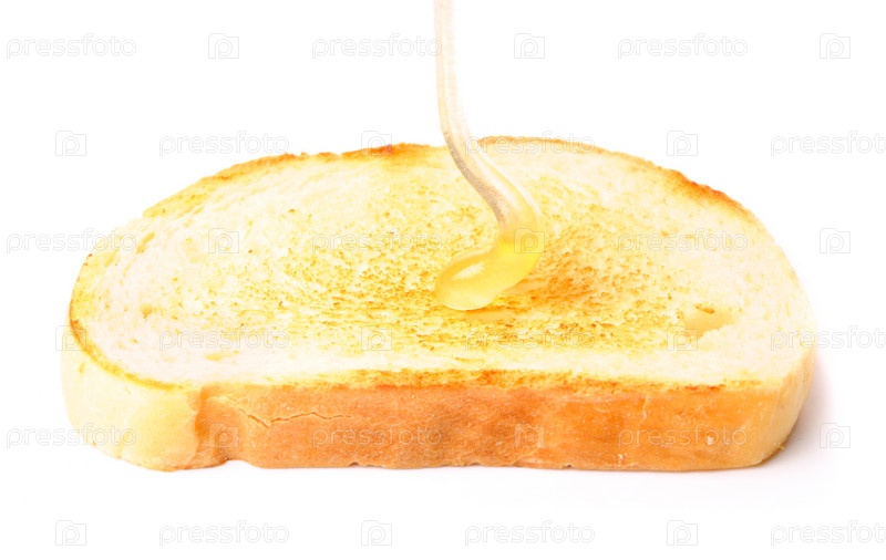 Тост с медом изолирован на белом фоне