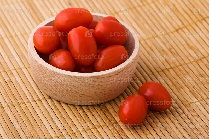 Помидоры черри в деревянной миске