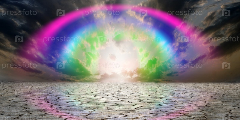 Безжизненная потрескавшаяся земля и фантастическое небо