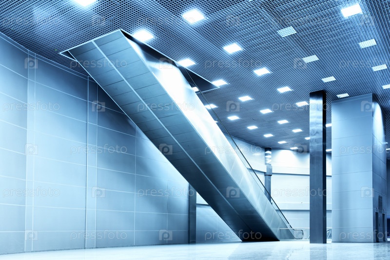 Большой современный зал с эскалатором