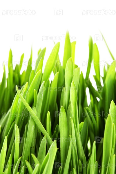 Зеленая трава на белом фоне