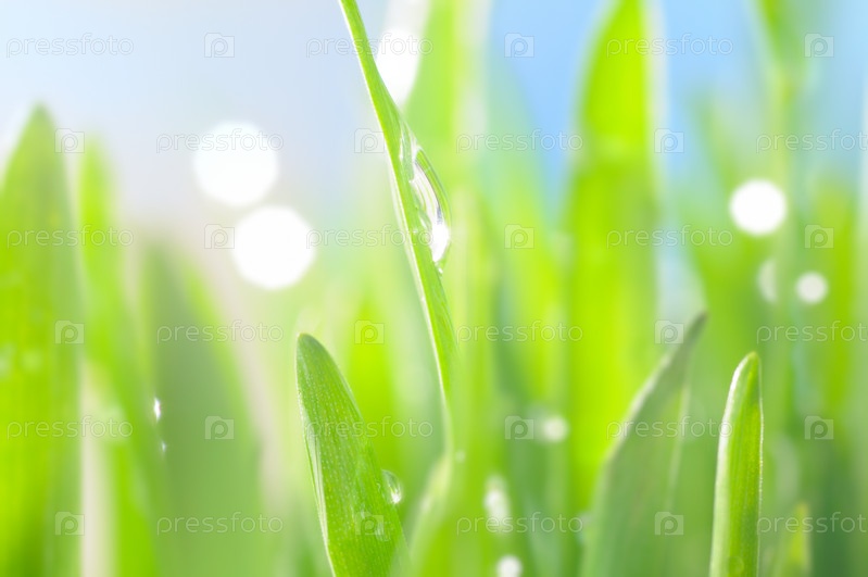 Зеленая трава с каплями росы