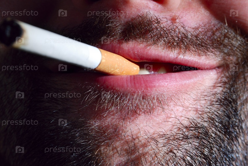 Нижняя часть лица мужчины с сигаретой во рту