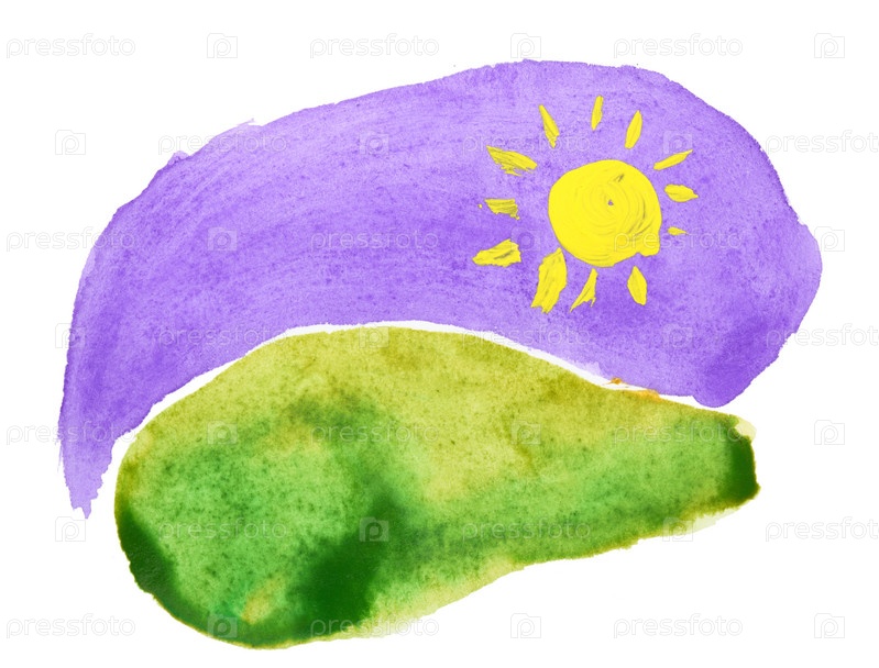Детский акварельный рисунок на белом фоне