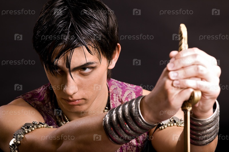 Портрет молодого серьезного человека с саблей