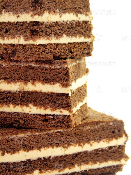 Шоколадные пирожные с ванильным кремом на белом фоне