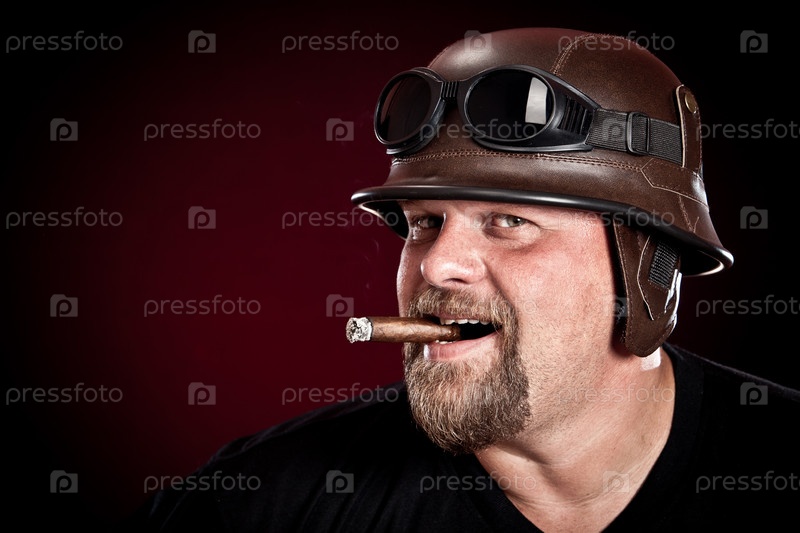 Портрет мужчины в шлеме с сигарой во рту