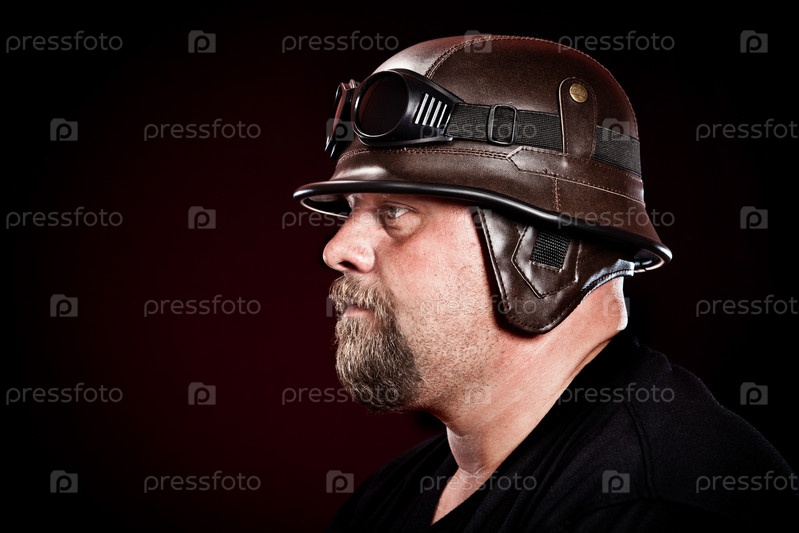 Портрет мужчины в шлеме на темном фоне