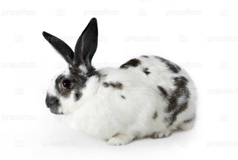 Белый кролик с серыми пятнами