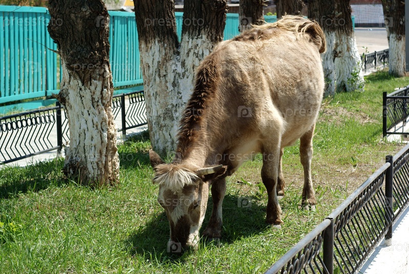 Корова на газоне