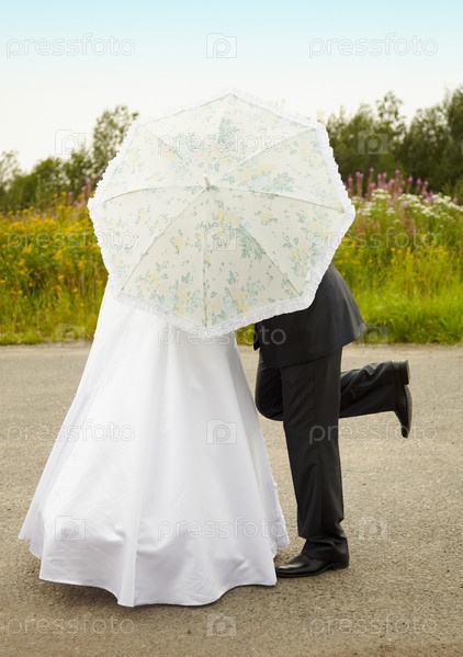 Жених и невеста за зонтом