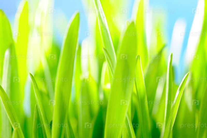 Зеленая трава на голубом фоне