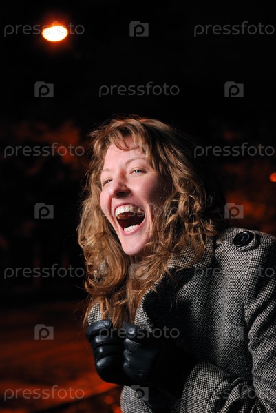 Смеющаяся девушка на фоне ночного города